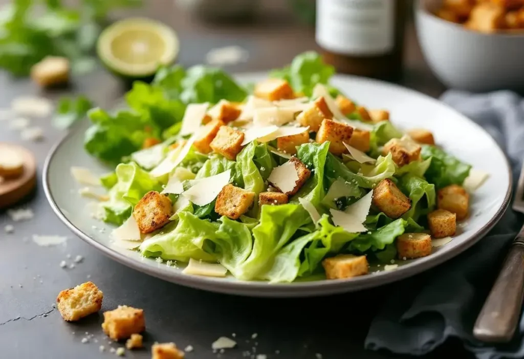Il ne reste plus qu’à dresser. Disposez vos feuilles de salade nappées de sauce dans une grande assiette. Parsemez de copeaux de parmesan, ajoutez quelques croûtons grillés, un filet d’huile d’olive ou un dernier tour de poivre. C’est beau, c’est gourmand, et on dirait presque un plat de bistrot parisien.