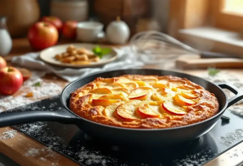 Pas de four ? Ce n’est pas une excuse. Ce gâteau aux pommes fondant se prépare en quelques minutes à peine, directement dans une poêle. Oui, une simple poêle ! Résultat ? Un dessert réconfortant, doré, moelleux… et qui embaume la maison de parfum sucré. Parfait quand la gourmandise frappe et que vous voulez un dessert sans prise de tête.