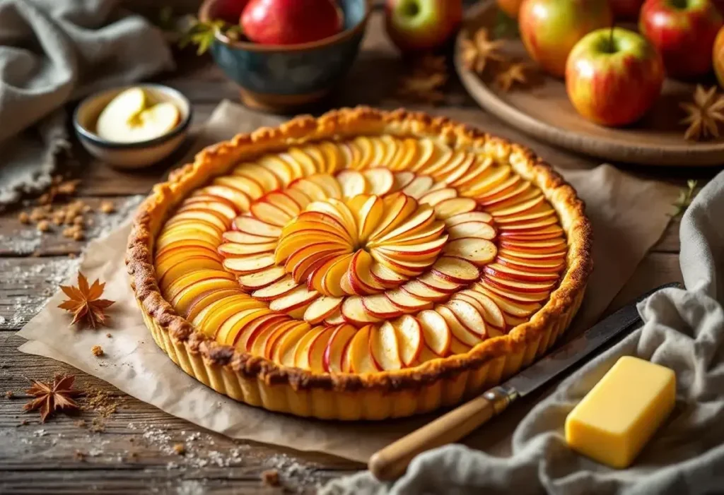 Imaginez : des pommes tranchées très finement, comme des pétales. Une base croustillante dorée à souhait. Une fine couche de confiture pour un effet glacé. Et en bouche ? C’est fondant, sucré juste ce qu’il faut, avec une pointe de beurre salé. Vous salivez déjà ?
